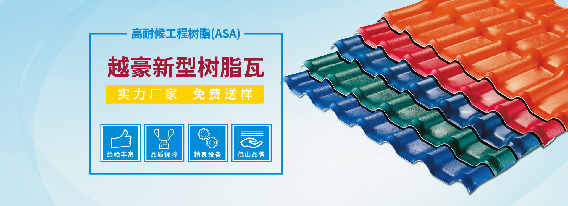 佛山市越豪建材科技有限公司位于建材制造業發達的佛山市,是一家專業研發、生產、銷售ASA合成樹脂瓦、APVC 工程耐候瓦、PVC多層防腐隔熱瓦等系列產品的廠家。